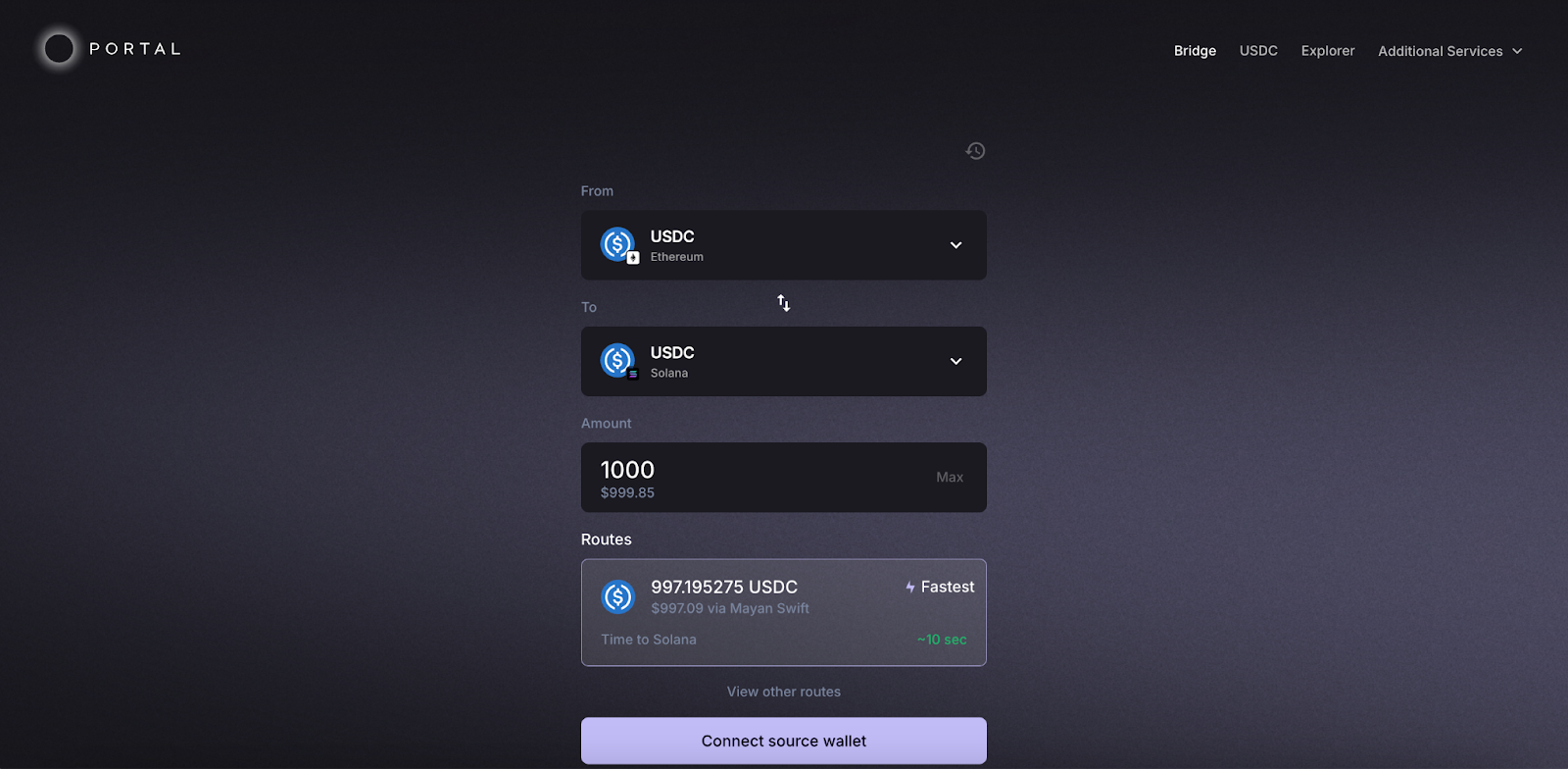 Website:portalbridge.combr>Portal supports Ethereum, Solana, BNB Chain, Avalanche, and others. It works by locking assets on the source chain and issuing wrapped tokens on the destination chain. The process involves selecting your tokens and chains, connecting your wallet (e.g., MetaMask or Phantom), confirming the transaction, and completing the claim on the new chain.