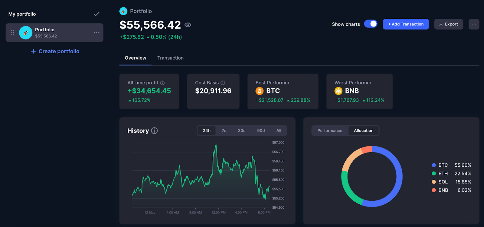Manual tracking works best if you’re using platforms like Coinbase, Binance, or Kraken. You don’t need to connect a wallet or share any sensitive data you just log your purchases and check in on performance over time.